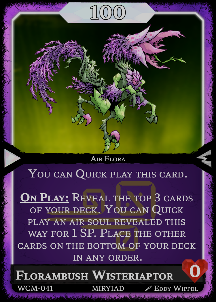 On Play: Reveal the top 3 cards of your deck. You can Quick play an air soul revealed this way for 1 SP. Place the other cards on the bottom of your deck in any order.